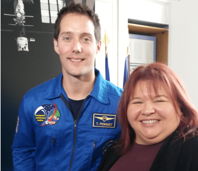 Nous restons donc en contact et, lorsqu’en 2014 Geneviève Fioraso, alors Ministre de la Recherche, annonce la date de son départ vers la Station spatiale internationale, je suis là. Thomas me reconnait et me salue de loin. Après la conférence, on tombe dans les bras l’un de l’autre et on se congratule. La ministre, qui ne le connaissait pas, vient me voir, impressionnée. « Vous le connaissez ? Qu’est-ce qu’il est bien ! Il faut absolument que je l’emmène dans les écoles pour qu’il parle aux enfants ! ». Et c’est là que je dis à Thomas : « Maintenant, je te suis partout, je ne te lâche plus ! ». Il me répond juste avec un sourire, « Welcome on board! » et c’est parti !