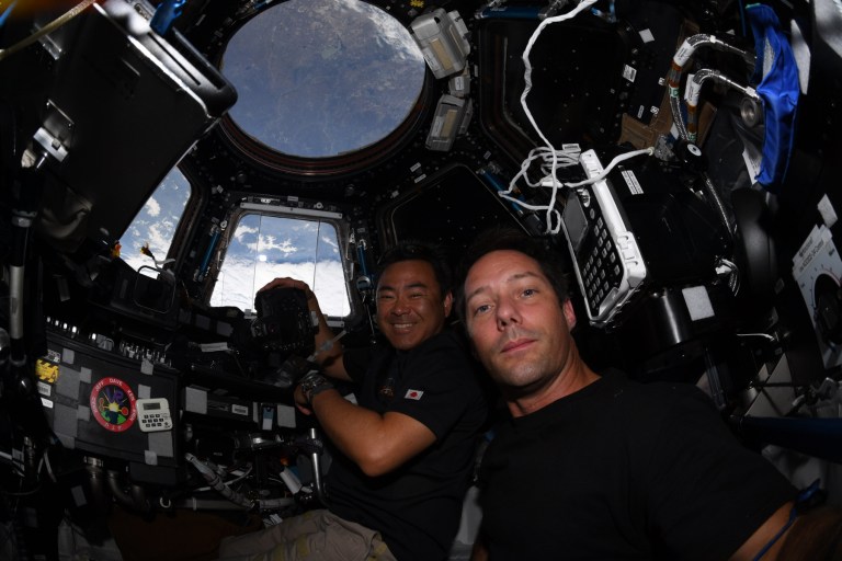 Thomas Pesquet nous offre une nouvelle vue prise depuis l’ISS, en postant sur les réseaux sociaux ce cliché avec le commentaire suivant : “Le weekend, on rencontre toujours du monde dans la Cupola… mais chacun a ses heures : moi le matin (pour voir l’Europe), Shane l’après-midi (pour les USA), et Aki le soir (pour le Japon)… ensuite on inverse pour les photos de nuit”.