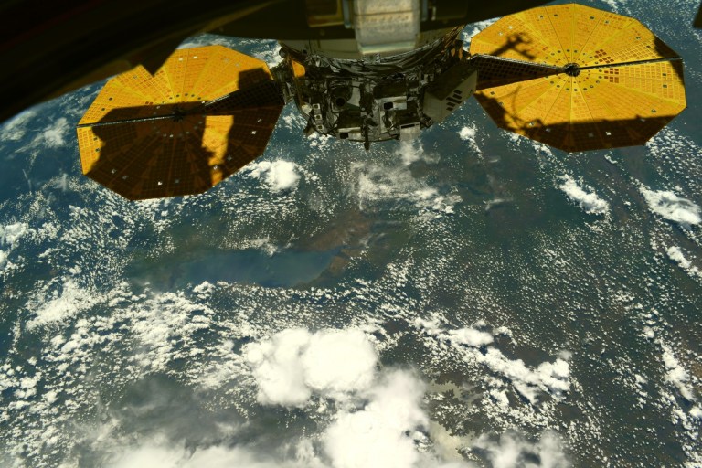 Thomas Pesquet nous offre une nouvelle vue prise depuis l’ISS, en postant sur les réseaux sociaux ce cliché avec le commentaire suivant : “Le lac Albert, situé à la frontière entre l’Ouganda et la République démocratique du Congo, est le 7e plus grand lac d’Afrique. Il apparaît sous les ailes rondes (enfin, plutôt les panneaux solaires) de notre cargo Cygnus arrimé sur la partie inférieure de la Station spatiale. Le chanceux profite d’une terrasse ombragée avec vue… sur la Terre ”.