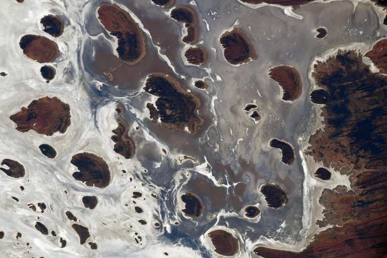 Thomas Pesquet nous propose une vue du Centre-Ouest de l’Australie, avec le commentaire suivant : “ L’Australie vue du ciel. La diversité des paysages de notre planète ne cessera jamais de m’époustoufler.