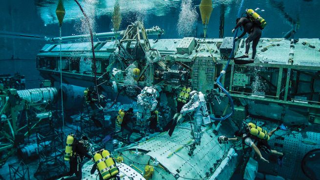 Depuis cette époque, tous les astronautes s’entraînent dans ce qui est devenu le Neutral Buoyancy Laboratory à Houston (Labo de flottabilité neutre, 61 m x 31 m et 12 m de profondeur), où une réplique complète de l’ISS est immergée. Les astronautes répètent sans cesse les gestes qu’ils devront effectuer dans l’espace.