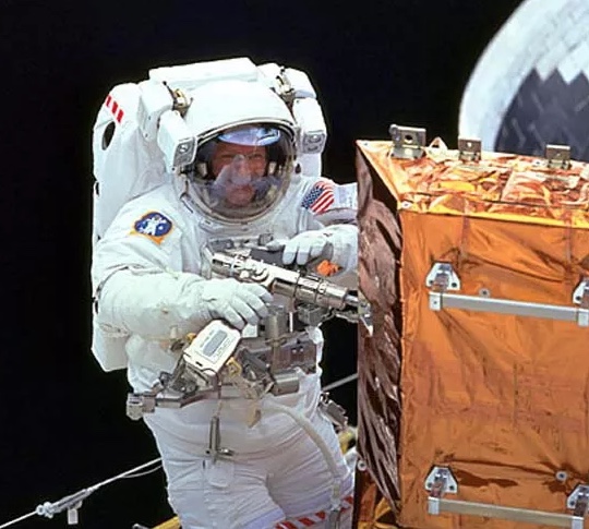 L’apesanteur n’aide pas, car selon la 3ème loi de Newton, si vous faites une action, il y a immédiatement une réaction de sens opposé. Donc si vous vissez une vis avec une visseuse, c’est vous qui tournez. Il faut donc s’accrocher quelque part.