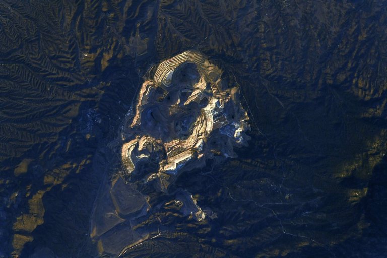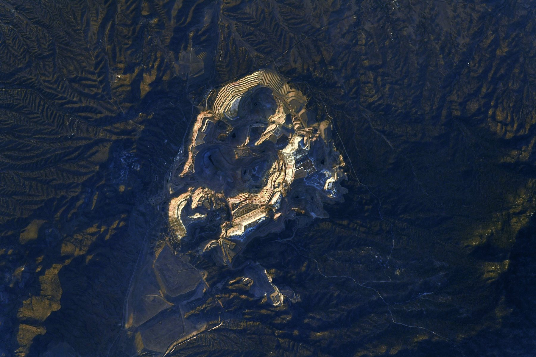 Nous sommes au-dessus d’un gigantesque site minier (4 km par 9 km) situé au Nouveau-Mexique, dans le Sud-Ouest des Etats-Unis. Cette mine appartient à Freeport-McMoRan Copper & Gold Inc., une société américaine spécialisée dans l’exploitation de minerai de cuivre et d’or. Freeport exploite de nombreuses mines à ciel ouvert un peu partout sur la planète.