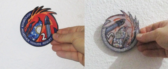 « I wanted Crew 2’s patch to be similar, but different. So we went with many ideas for dragon colors, but because we want it to stand out on their blue flight suits, we chose orange. I worked with Aki very closely and he shared the designs with the rest of the crew as we went along, to get their thoughts. »