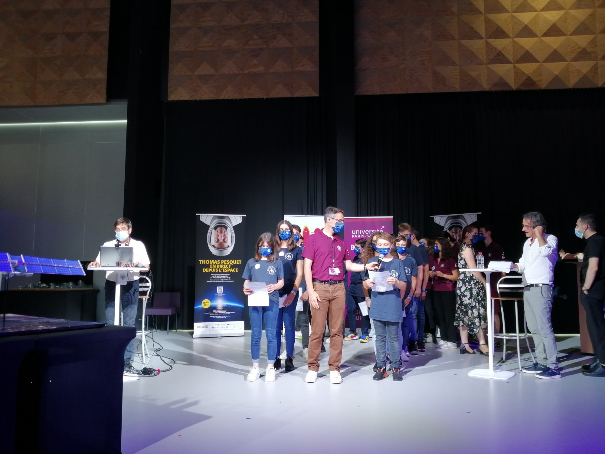 Le 17 juin, l’Université Paris-Saclay a accueilli le sixième contact Ariss de la mission Alpha, cinq semaines après celui réalisé à Antony, dans les Hauts de Seine. Il a permis à une vingtaine de collégiens du lycée de La Norville, dans l’Essonne, de poser des questions en direct à Thomas Pesquet, par l’intermédiaire de trois stations radioamateur : la station du radioclub F5KEE de Viry-Chatillon installée à Saclay pour l’occasion, la station ON4ISS situé à Anvers (au nord de la Belgique) et opérée par Jan Poppeliers, et la station FX0ISS du module Columbus utilisée par Thomas Pesquet.