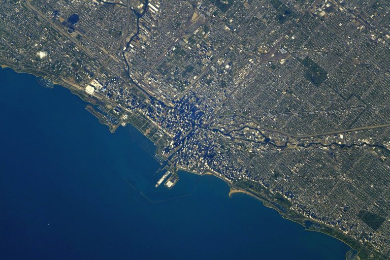 Thomas Pesquet nous propose cette vue avec le commentaire suivant : “Chicago. J’ai grandi en regardant gagner les Chicago Bulls de Michael Jordan, mais je n’ai toujours pas eu l’occasion de la visiter… La NASA est un acteur incontournable de l’ISS et en a construit, lancé et assemblé une grande partie, alors forcément la fête nationale américaine du 4 juillet est incontournable ici ! En hommage à nos amis de l’autre côtés de l’Atlantique, voici un post avec *beaucoup* de photos, à la hauteur de ce pays XXL. Voici donc quelques villes américaines iconiques – un point commun très visible entre toutes, malgré leurs identités résolument différentes : le plan quadrillé so American.”.