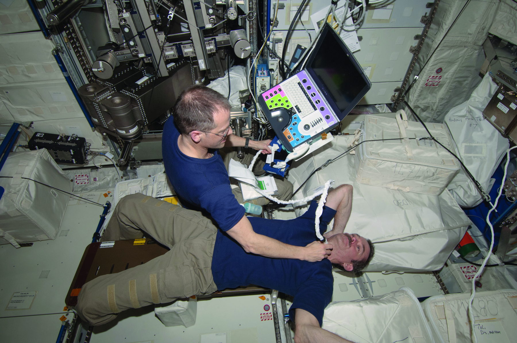 Surveiller la santé et les modifications physiologiques des astronautes lorsqu’ils sont en mission dans l’espace n’est pas une chose aisée. Des examens médicaux poussés sont réalisés avant et après leur vol. Mais, avec une durée moyenne des séjours sur orbite basse de six mois (et probablement plus pour l’exploration de la planète Mars) et l’absence de professionnel de santé systématique dans les équipages, la question de la réalisation d’examens médicaux et notamment d’imagerie se pose.