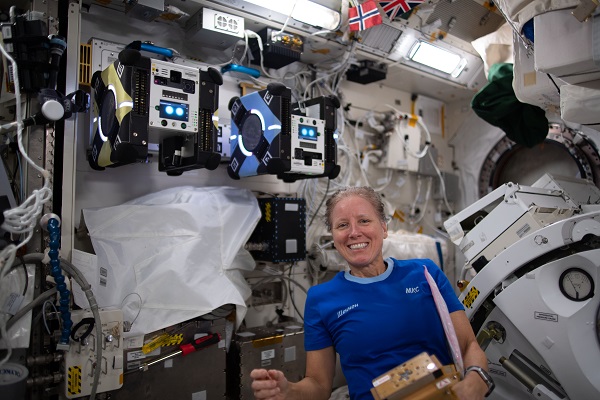 Crew-1 est resté très productif avec l’aide d’assistants robots. A côté de Walker, on remarque deux des trois robots cubiques actuellement à bord de la station. Les recherches en cours continuent pour examiner comment ces robots autonomes volants peuvent assister les astronautes dans leurs tâches de routine et fournir aux équipes du support sol des données de monitoring de l’équipage.