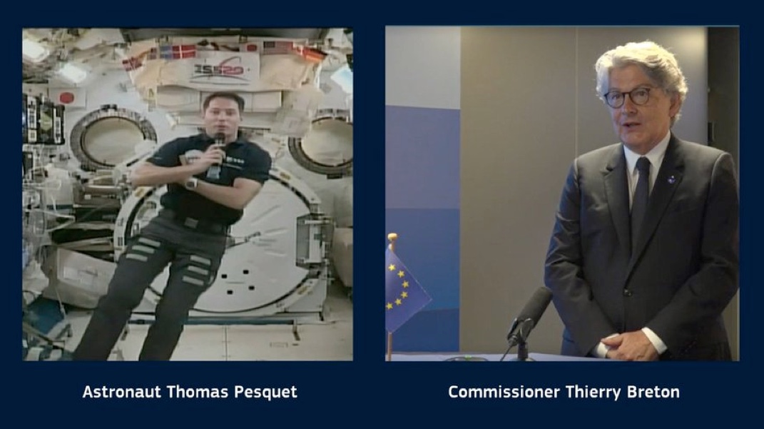 La mission Alpha n’échappe pas à cette tradition et, le 7 septembre, Thomas Pesquet a pu s’entretenir en direct et en vidéo avec deux commissaires de la Commission Européenne : le Français Thierry Breton (chargé du Marché intérieur et dont le portefeuille contient notamment l’espace et le numérique), et le Lituanien Virginijus Sinkevicius (chargé de l’environnement, les océans et la pêche). Accompagnés de Josef Aschbacher, le directeur général l’Agence spatiale européenne, ils étaient venus visiter le Centre européen de recherche et de technologie spatiales (Estec), implanté à Noordjwik, aux Pays-Bas.