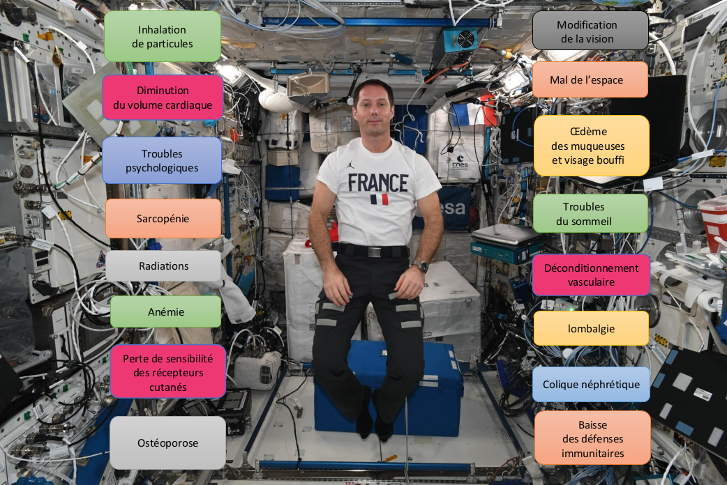 A ce jour, seules l’ostéoporose et les modifications visuelles sont encore observées plusieurs mois après le retour au sol. Les troubles de la vision font l’objet de recherches afin d’évaluer l’impact au long cours.