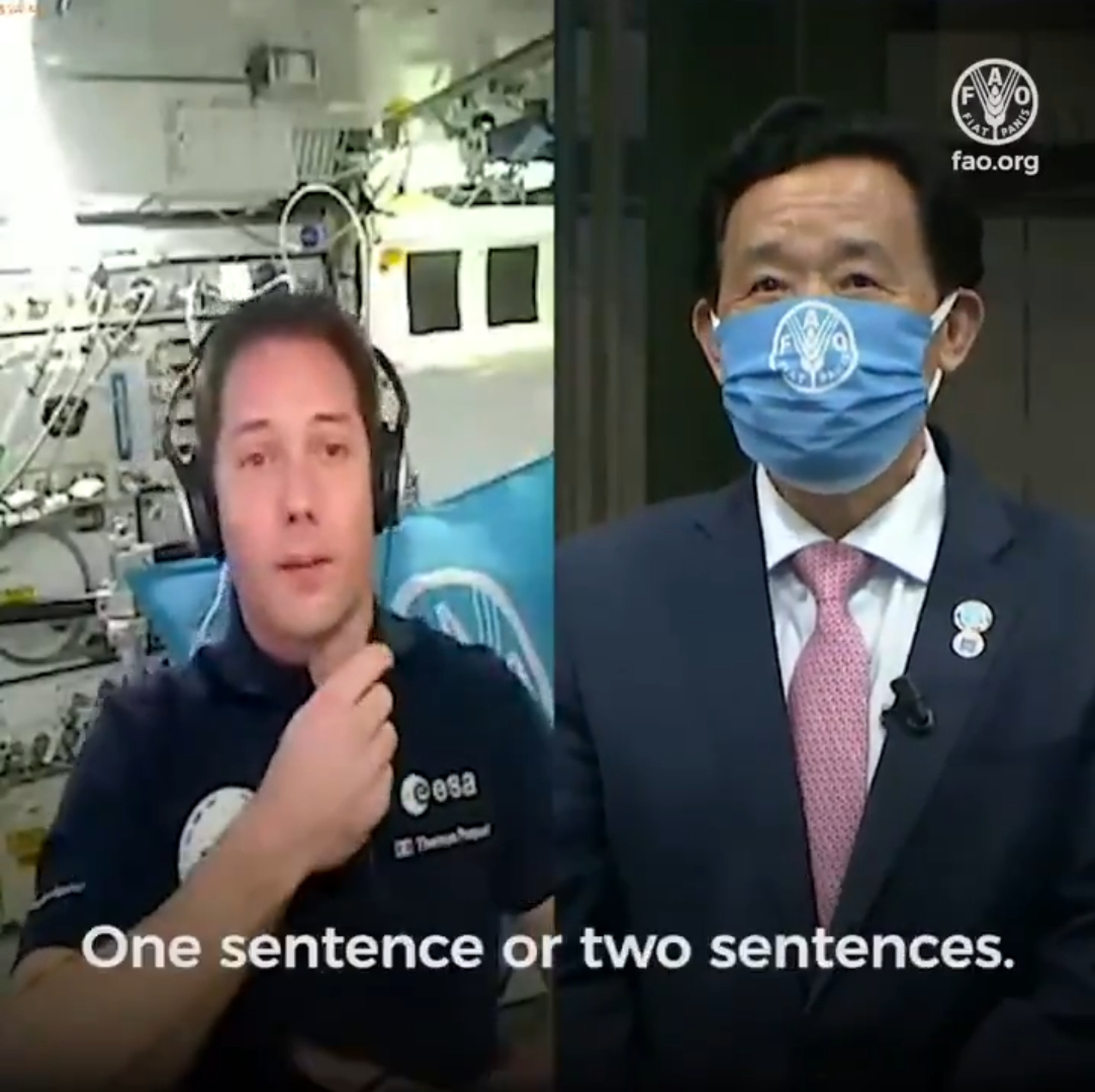 Lors d’une liaison vidéo de quelques minutes organisée le 17 septembre entre la Station spatiale internationale et Florence, en Italie, l’astronaute français Thomas Pesquet s’est entretenu avec Qu Dongyu, le directeur général de la FAO (Organisation pour l’alimentation et l’agriculture).
