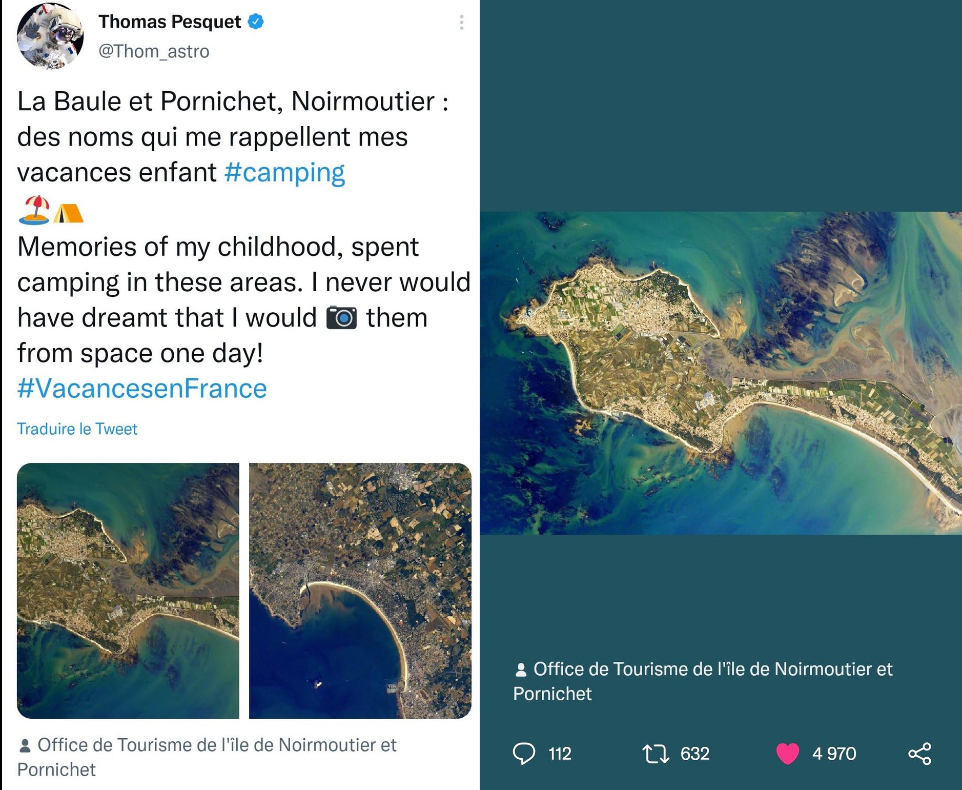 Le 12 juin dernier, Thomas Pesquet prenait une photo nous montrant l’Ïle de Noirmoutier, et qu’il diffusait sur les réseaux le 5 août.