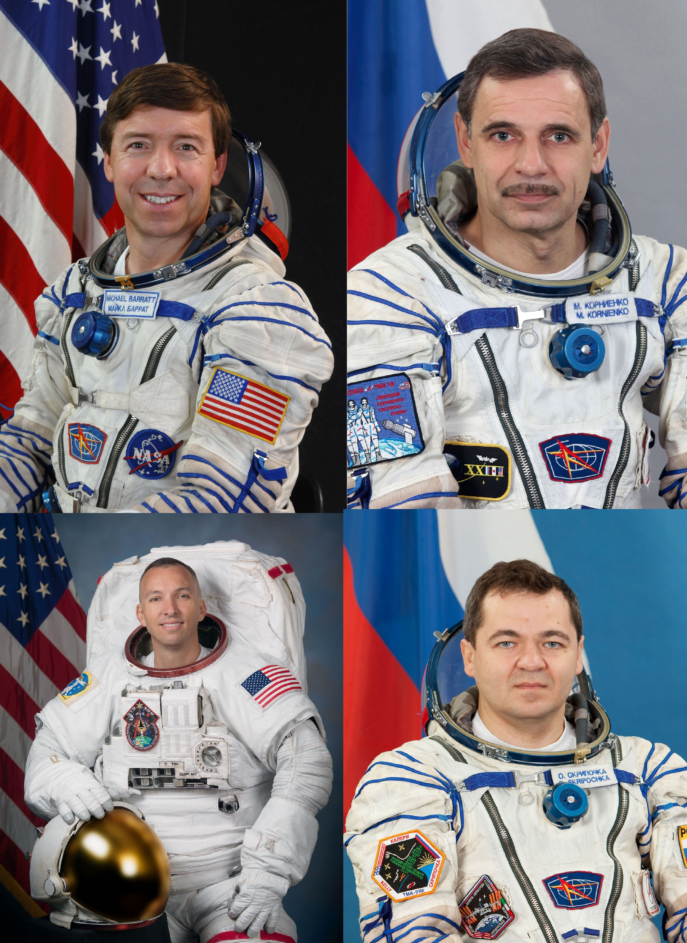Michael Barrat (USA), Mikhail Kornienko (Russie), Randy Bresnik (USA) et Oleg Skripocha (Russie) les fêtent à bord à bord ce l’ISS, respectivement le 16 avril 2009, le 15 avril 2010, le 11 septembre 2017 et le 24 décembre 2019.