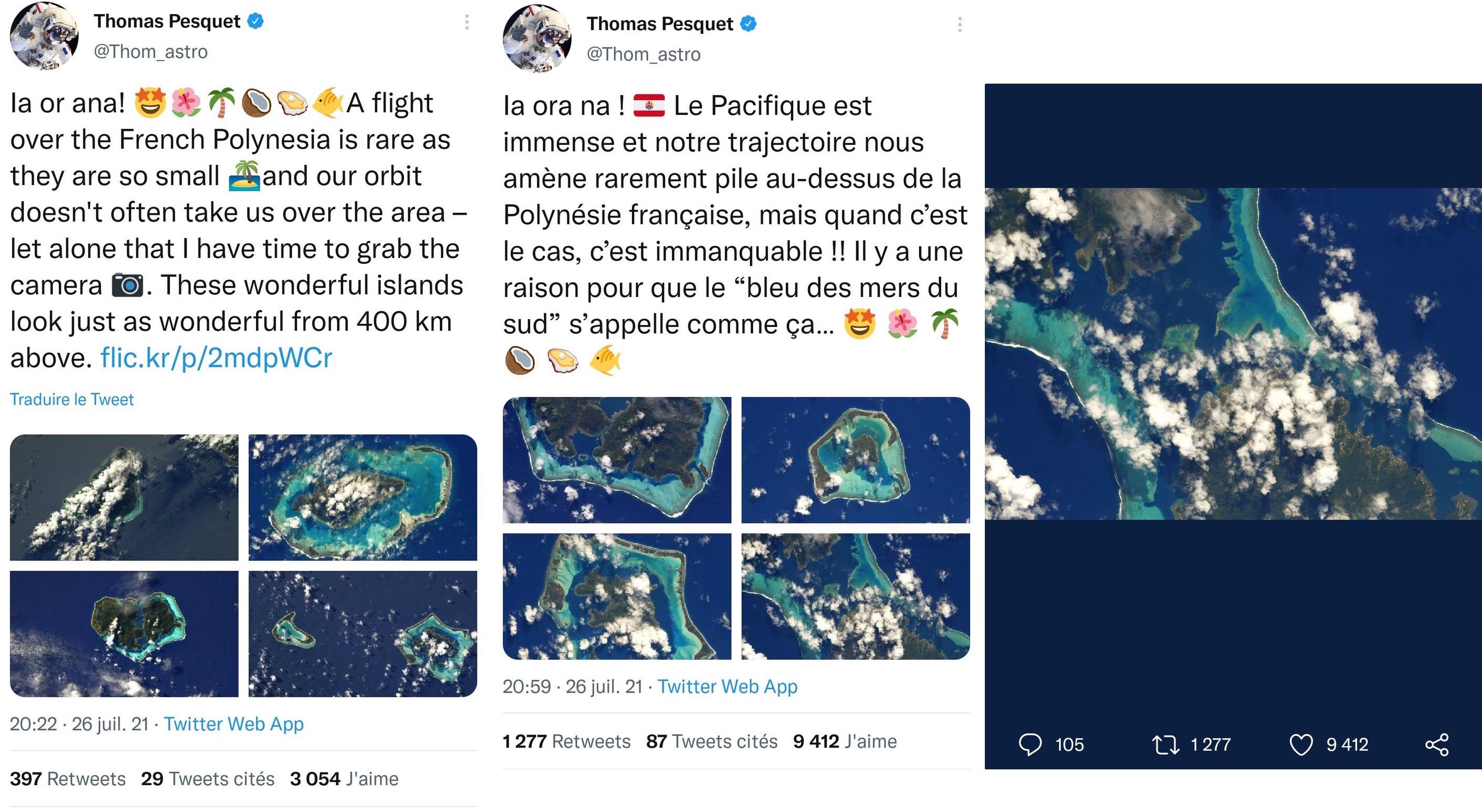 Le 3 juillet dernier, Thomas Pesquet prenait une série de photos nous montrant la Polynésie française et qu’il diffusait sur les réseaux le 26 juillet. Et parmi elles, Raiatea et Tahaa.