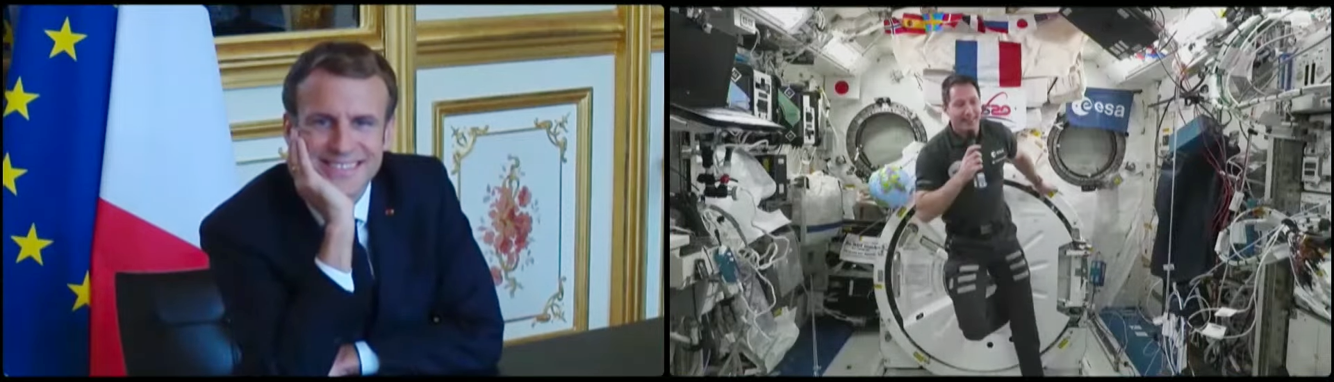 Le 4 novembre, durant une vingtaine de minutes, le président de la République (depuis l’Élysée) s’est entretenu avec Thomas Pesquet (à bord de la Station spatiale internationale), à quelques jours de la fin de la mission Alpha et du retour sur Terre de l’équipage Crew 2.