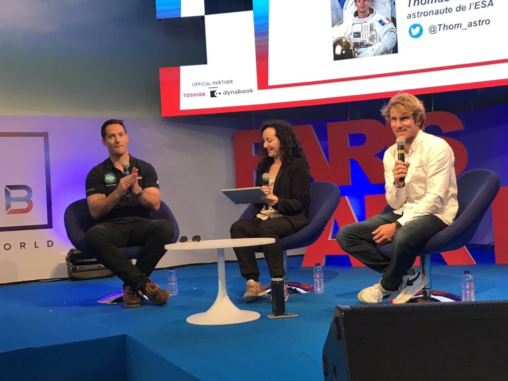 La célèbre vulgarisatrice scientifique Florence Porcel (autrice, actrice, chroniqueuse de radio et animatrice audiovisuelle) a eu le privilège d’animer une table tonde avec Thomas Pesquet et le navigateur François Gabart, à l’occasion du Salon du Bourget 2019. A ce stade de la mission Alpha, elle lui souhaite un bon retour… particulier.