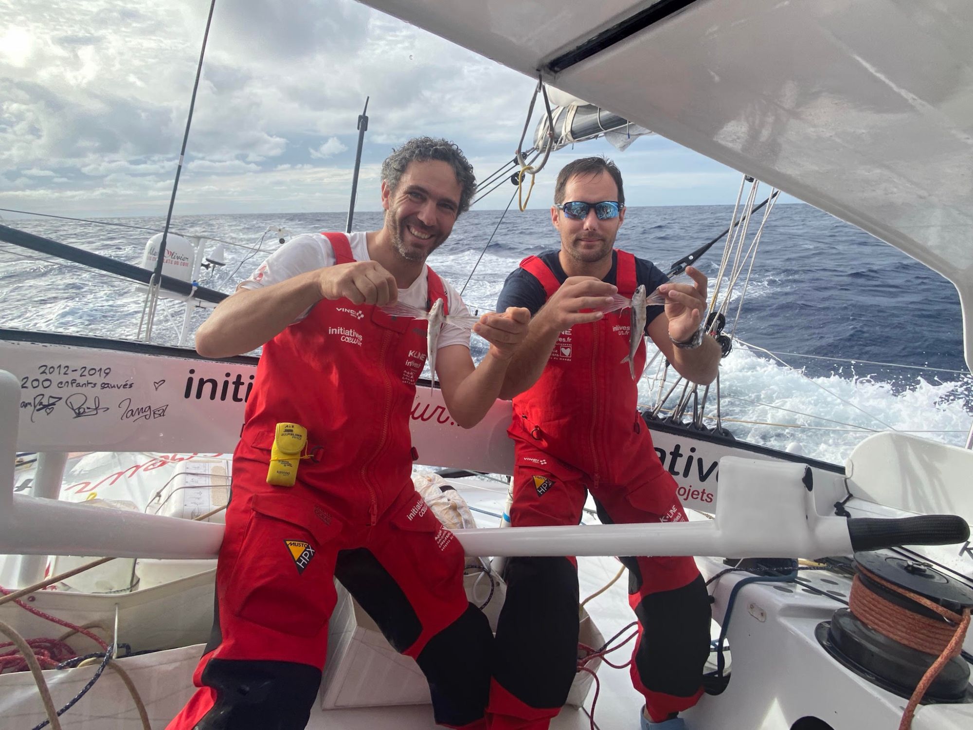 En commentaire de la photo qui accompagne son message à Thomas Pesquet, Tanguy de Lamotte écrit : « Sur cette photo, nous tenons des poissons volants qui étaient tombés sur le pont du bateau pendant la nuit. Ils sont synonymes d’eau chaude et sont très beaux à voir planer au-dessus de la surface de l’eau lorsqu’ils s’envolent pour échapper au prédateur qu’ils pensent que nous sommes (un gros bateau qui leur fait peur…) ».