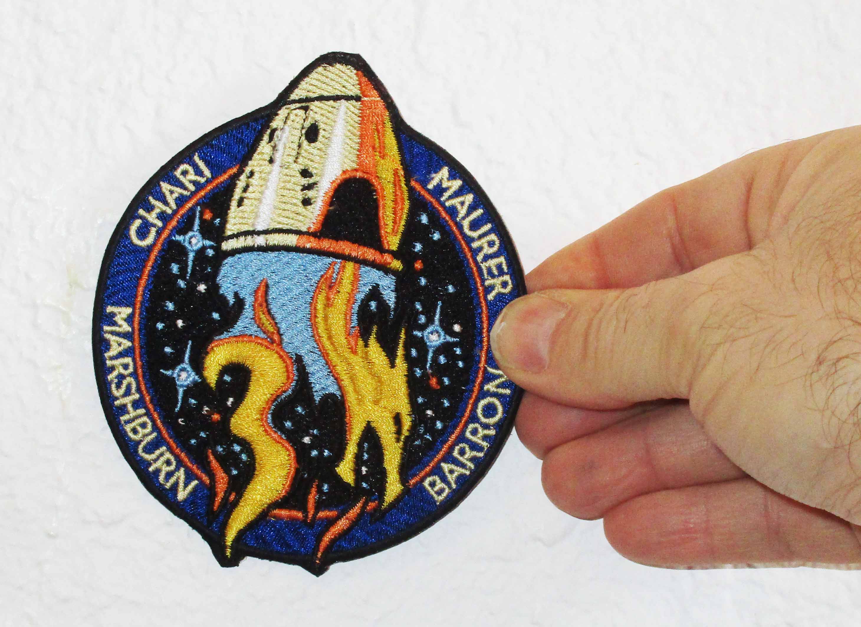 Les couleurs du patch ont été soigneusement choisies : noir pour l’espace, l’univers que nous cherchons à comprendre, rouge pour l’amour et la passion que nous avons pour l’espace et pour son exploration, or pour les étoiles, leurs énergies et leurs lumières qui permettent la vie, blanc pour la lumière, la technologie, le progrès scientifique qui éclaire les ténèbres de l’inconnu.
