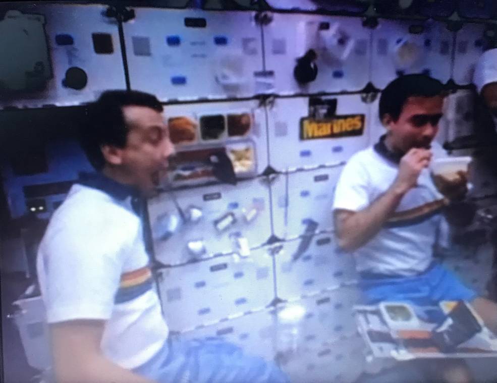 Il faudra ensuite attendre le 28 novembre 1985 et la mission STS-61B de la navette Atlantis, composée de sept membres d’équipage. Cette fois, des mets spéciaux furent dégustés : cocktail de crevettes, dinde irradiée et accompagnée de sauce aux canneberges, mais aussi tortillas – les premières dans l’espace, apportées par l’astronaute mexicain Neri Vela.