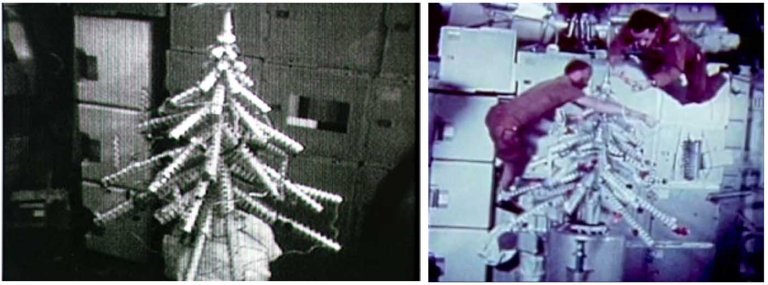 Cela commence en 1968 : les premiers astronautes à passer le réveillon de Noël dans l’espace sont ceux d’Apollo 8 (Frank Borman, James Lovell et Bill Anders). Ils vont offrir comme cadeau aux Terriens le premier lever de Terre qui, encore aujourd’hui, reste une des photos les plus iconiques de l’exploration spatiale par l’homme. Et ils liront, ce qui leur a été reproché par certains, les premiers versets de la Genèse.