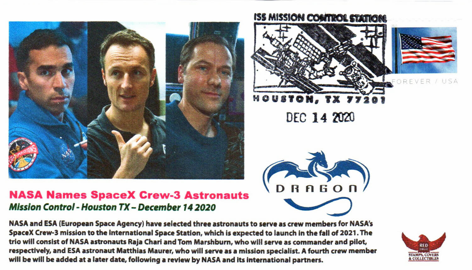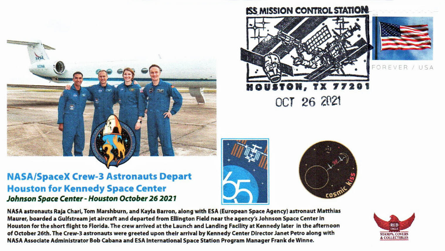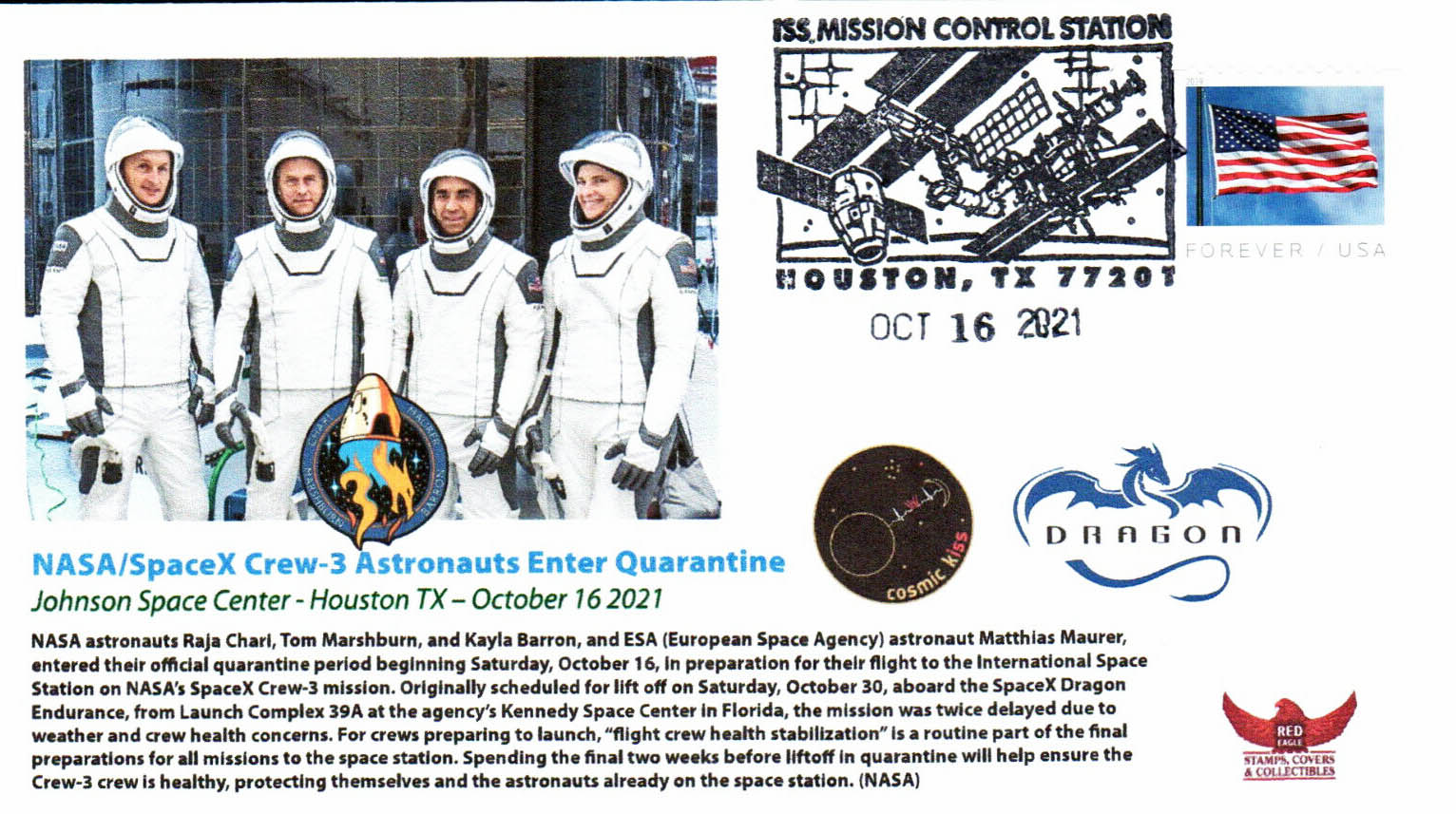 Pour ce nouveau rendez-vous du Coin du collectionneur, on va s’intéresser à la mission Crew 3 jusqu’à son amarrage le 11 novembre 2021. Et même si ce n’est pas toujours facile (et possible parfois), avec un peu de volonté et de détermination, on peut arriver au genre de suivi de mission que je vais vous montrer… Un grand merci d’abord et surtout au négociant américain qui essaie de faire au mieux pour un suivi très complet.