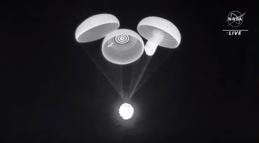 Malgré tout, a précisé la Nasa, « le taux de descente verticale des deux vols restait dans les marges de conception du système au moment de l’amerrissage, et les quatre parachutes principaux se sont complètement ouverts avant chaque atterrissage ».