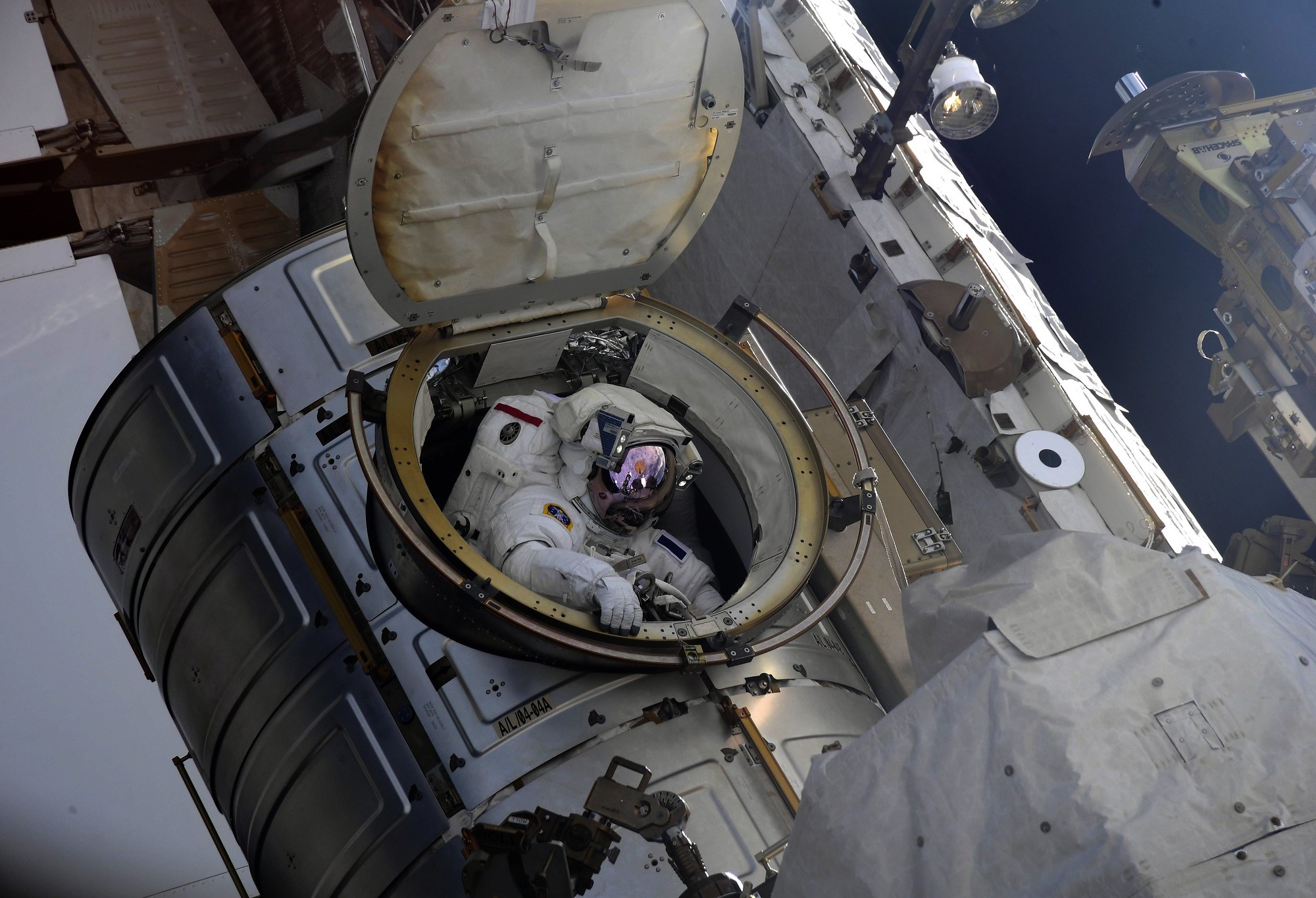 Ils font environ 350 kg chacun, et il a fallu les installer tout au bout de la station, donc à bâbord (à gauche) ; on était le plus loin possible du sas de sortie.
