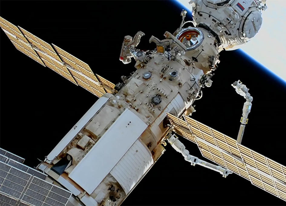 Le 28 avril, dix jours seulement après leur précédente sortie dans l’espace, les cosmonautes russes Oleg Artemiev et Denis Matveïev ont de nouveau revêtu leur combinaison spatiale Orlan MKS pour continuer à travailler sur le bras robotique européen ERA (European Robotic Arm). Ce dernier se trouve sur les flancs du module-laboratoire russe MLM Nauka, amarré depuis le 29 juillet 2021 à la Station spatiale internationale.