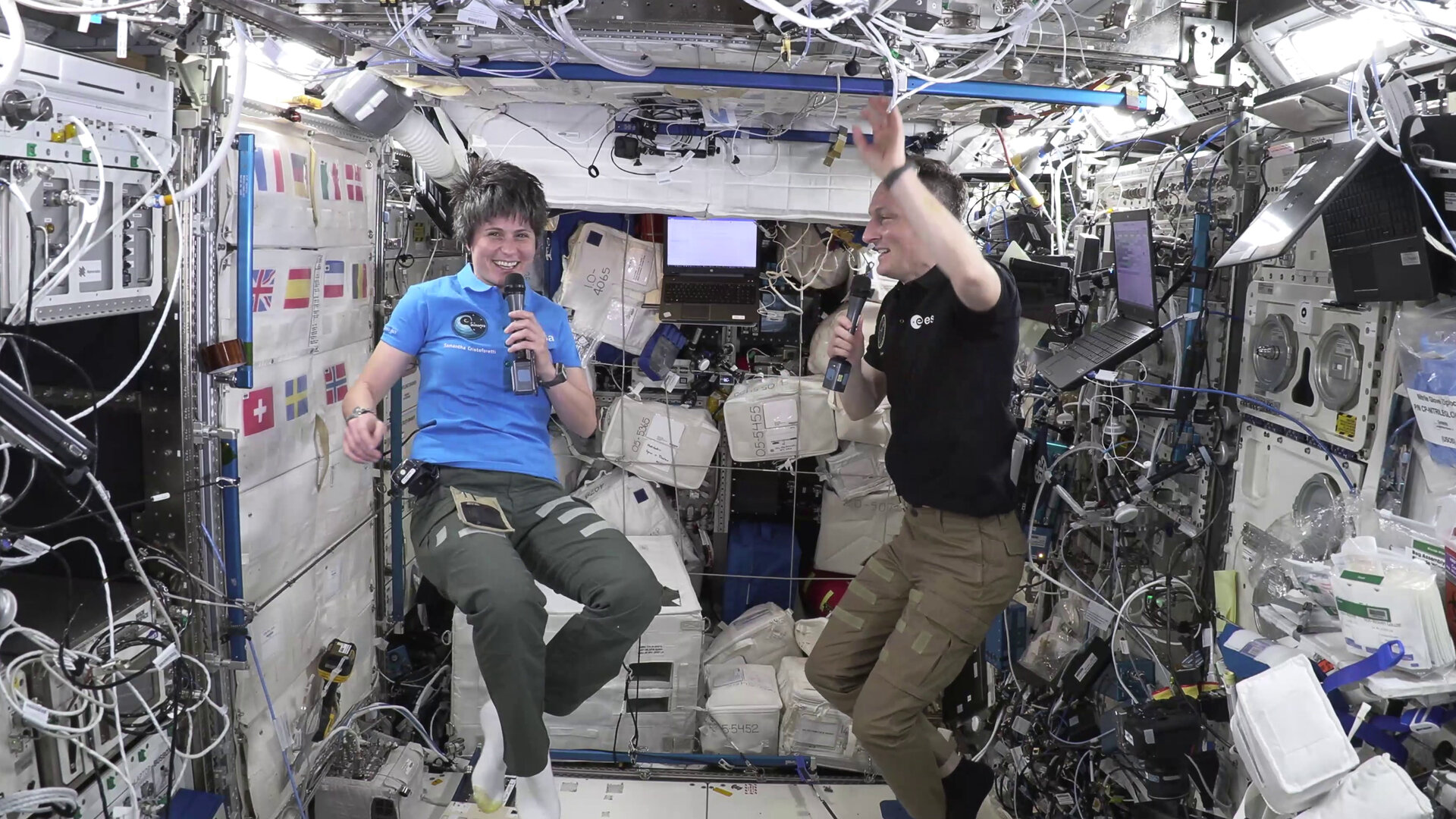 La seconde séquence, beaucoup plus informelle et joyeuse, a rassemblé les deux astronautes seulement.