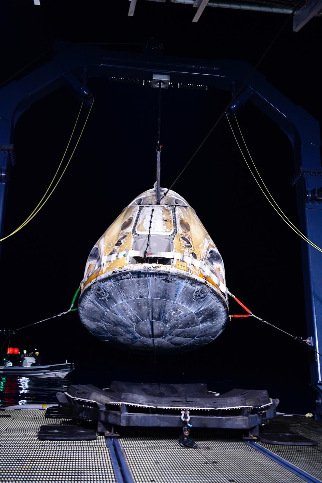 L’amerrissage est intervenu comme prévu le lendemain à 4 h 43 (TU) dans les eaux du golfe du Mexique, au large de la Floride.