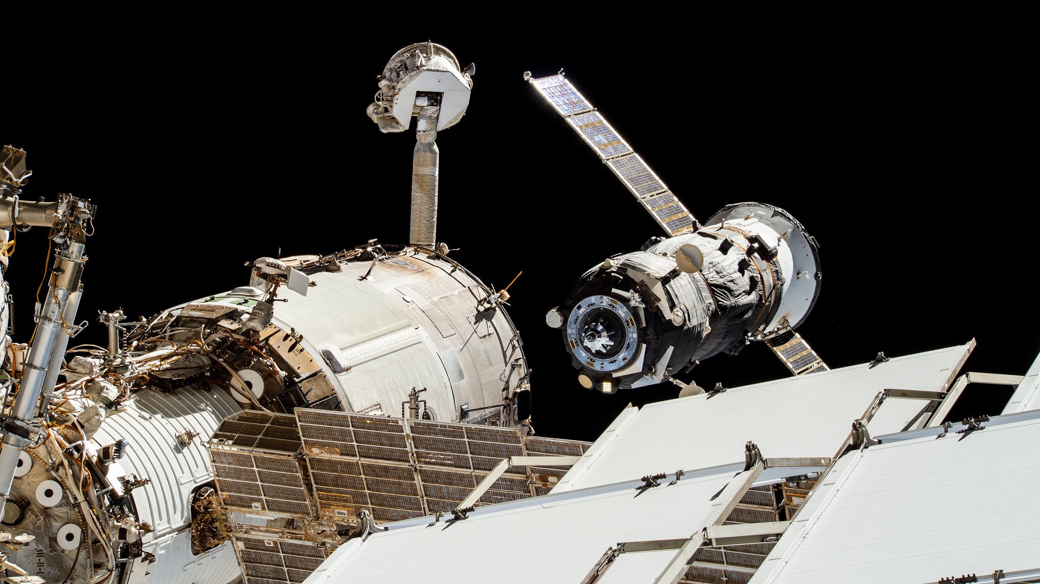 Puis il est venu s’amarrer à l’arrière du module russe Zvezda, en mode automatique mais sous l’œil vigilant des cosmonautes Oleg Artemiev et Denis Matveev.
