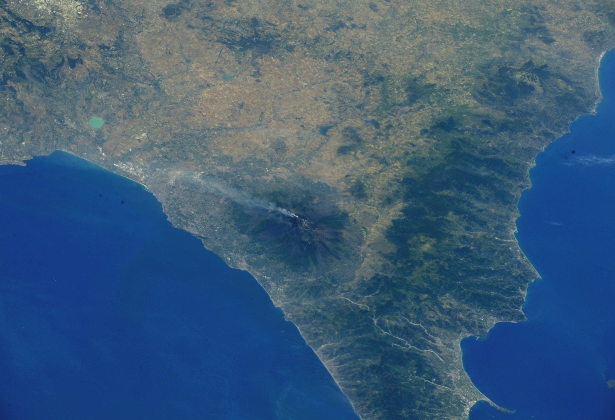 Sur le cliché de l’astronaute, en remontant la côte depuis l’Etna, on voit distinctement la ville de Catania abritant plus de 300 000 habitants.
