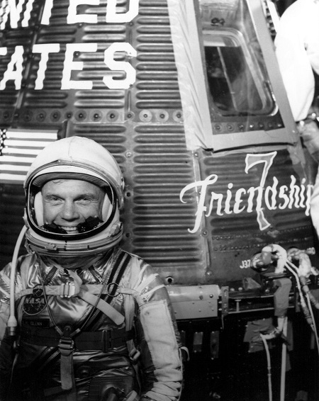John Glenn (1921-2016) est un astronaute sélectionné par la NASA en 1959 dans le fameux groupe Mercury Seven. Il est le premier Américain en orbite en 1962, puis revole à nouveau 36 ans plus tard à bord d’une navette, devenant à ce moment-là la personne la plus âgée dans l’espace. John Glenn a passé 9 jours, 19 heures et 54 minutes dans l’espace.