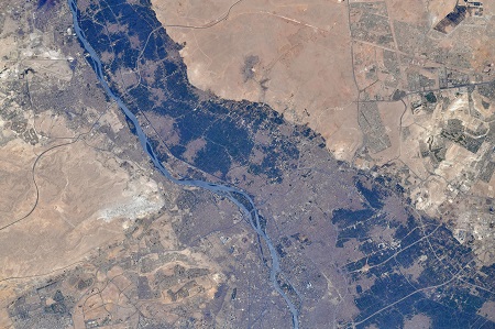 Une magnifique vue de la région du Caire, en Egypte, a été postée sur le compte Twitter de l’astronaute italienne Samantha Cristoforetti, actuellement à bord de la Station spatiale internationale dans le cadre de la mission Minerva.