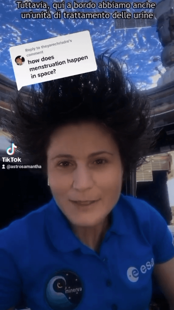 Samantha Cristoforetti est l’une des premières femmes astronautes à évoquer publiquement cette problématique via les réseaux sociaux et aussi facilement ; cela n’a pas manqué de soulever quelques commentaires scandalisés sur son tweet.
